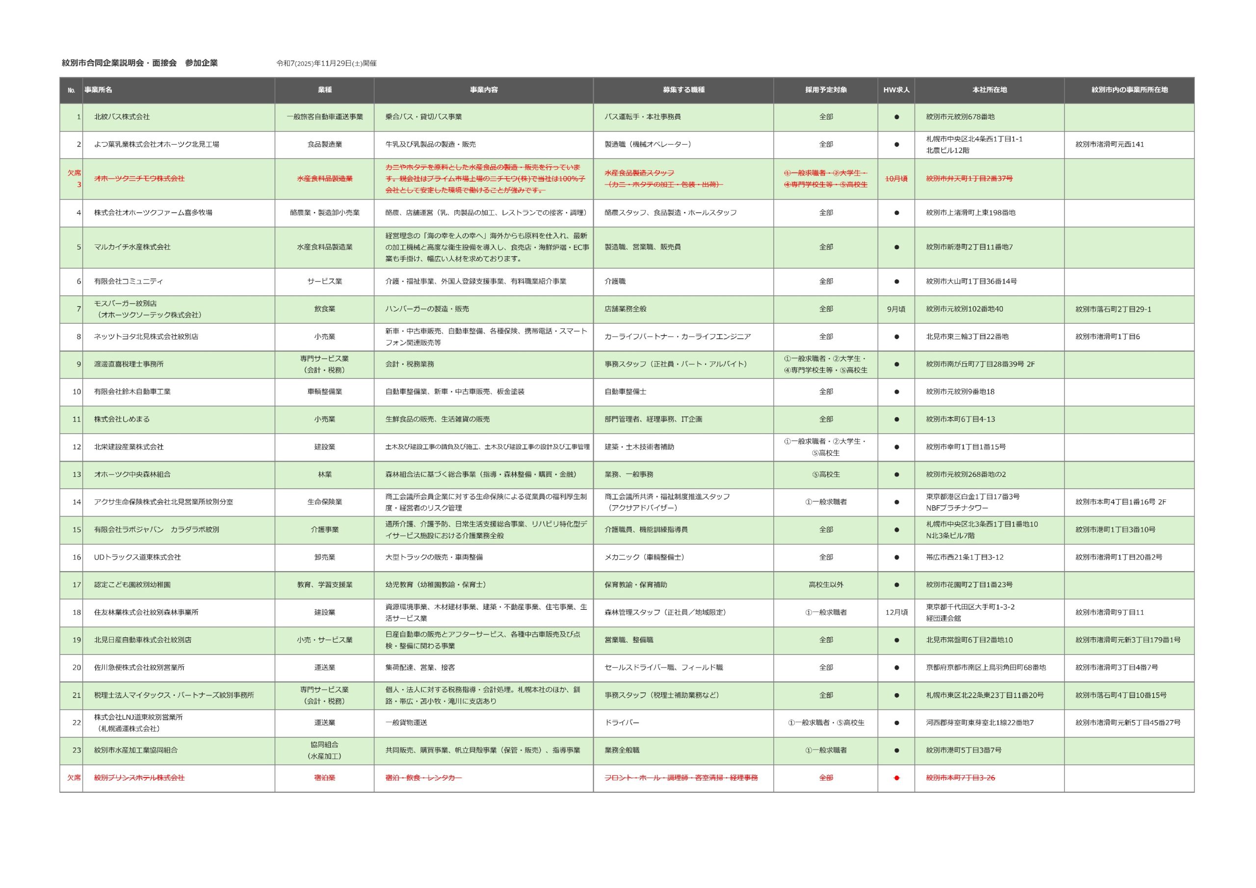 ≪求職者の皆様≫11/29 紋別市合同企業説明会・面接会(随時更新)2025年10月22日