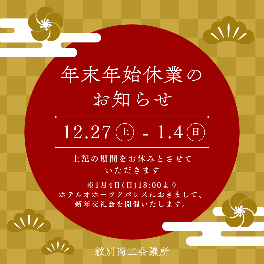 ※1月4日(日)午後6時より「2026年 新年交礼会」(場所:ホテルオホーツクパレス)